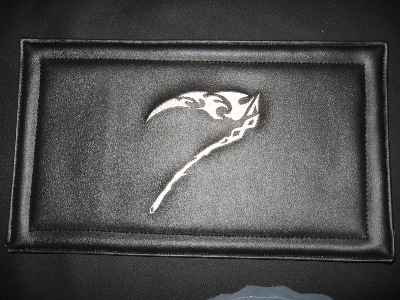 We also do custom embroidery work this is a copy of a guys tattoo that we had embroidered in his motorcycle seat. So if you want custom you found the right place .
